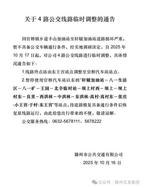 關(guān)于4路公交線路臨時調(diào)整的通告